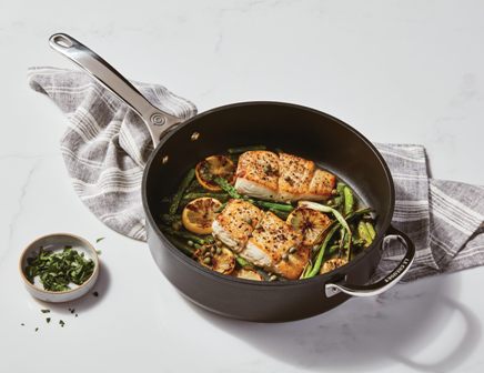 Pour saisir et faire sauter les viandes, les légumes et le poulet, choisissez une sauteuse en acier inoxydable. Cette casserole se révélera être votre plus polyvalent. Vous pouvez non seulement saisir quelque chose d’un brun doré, mais vous pourrez également faire une sauce rapide avec le jus de cuisson. Vous pouvez préparer un repas entier et ne disposer que d’une casserole. La poêle à frire de trois litres est un choix parfait pour préparer un risotto, une sauce pour pâtes maison ou même pour la friture. C’est parfait pour les sautés, vous n’aurez donc pas besoin d’un wok. Avec ce type de casserole, il est important que la base soit suffisamment épaisse. Une casserole mince peut se gondoler, rendant difficile la cuisson uniforme des aliments. La plupart des sauteuses en acier inoxydable de bonne qualité ont un noyau interne en aluminium ou en cuivre pour améliorer la conductivité thermique relativement médiocre de l’acier. Les poignées doivent être résistantes à la chaleur et sécurisées avec des rivets robustes et non corrosifs. Acier inoxydable, bois, et les poignées en plastique restent toutes froides sur la cuisinière, mais seuls l’acier et la fonte vont au four. Une sauteuse avec un manche en acier vous donne donc l’avantage de pouvoir terminer la cuisson au four.
